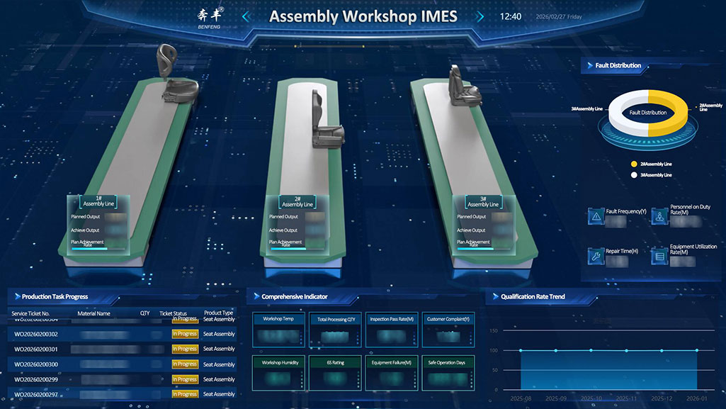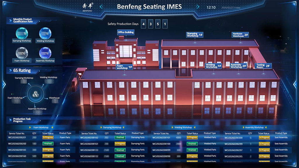 В цифровой экосистеме Benfeng Seats IMES сборочный цех с интеллектуальным управлением полным процессом становится последней площадкой для проверки качества готовых сидений.